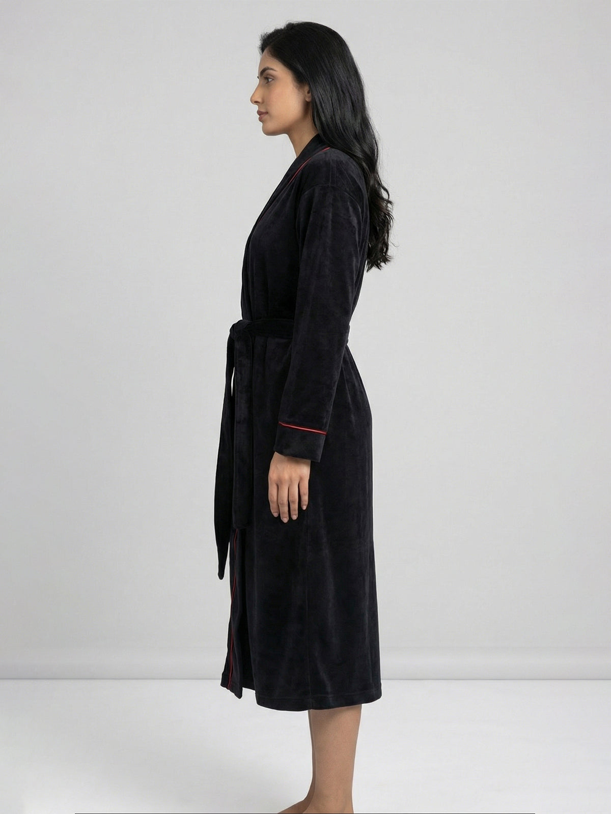 The Neon Line Robe is a soft velvet layer designed to elevate your lounge look with a bold touch. Crafted from smooth, plush velvet, it features a sleek neon trim that adds a modern, standout edge. Cozy, stylish, and effortless — the perfect piece to throw on day or night.