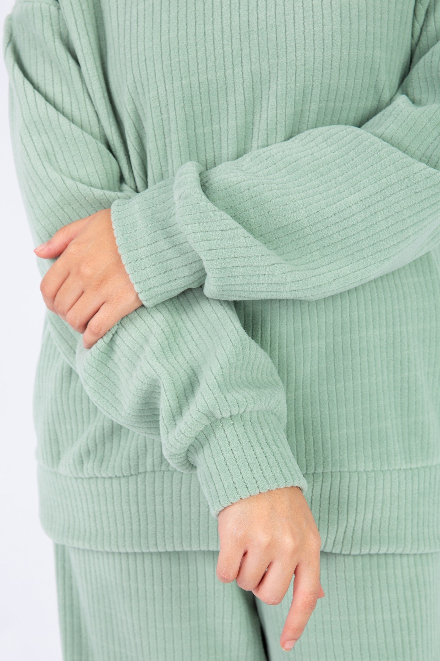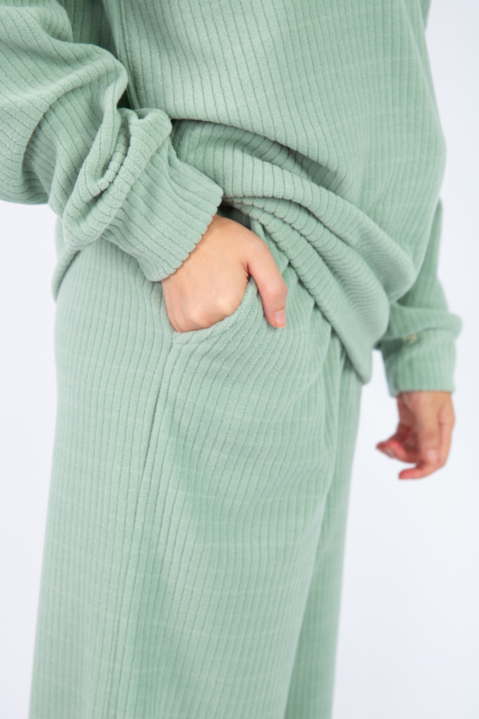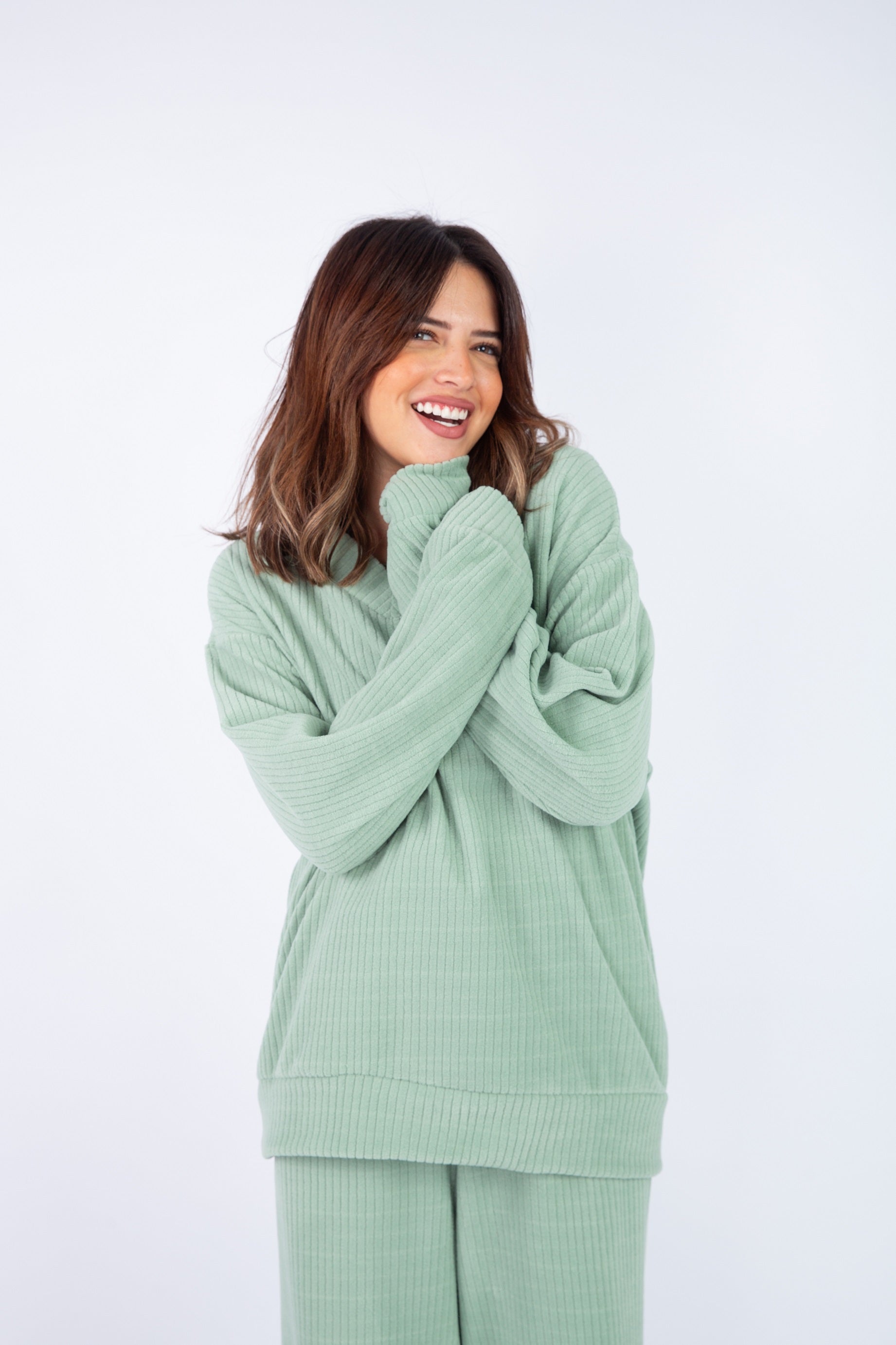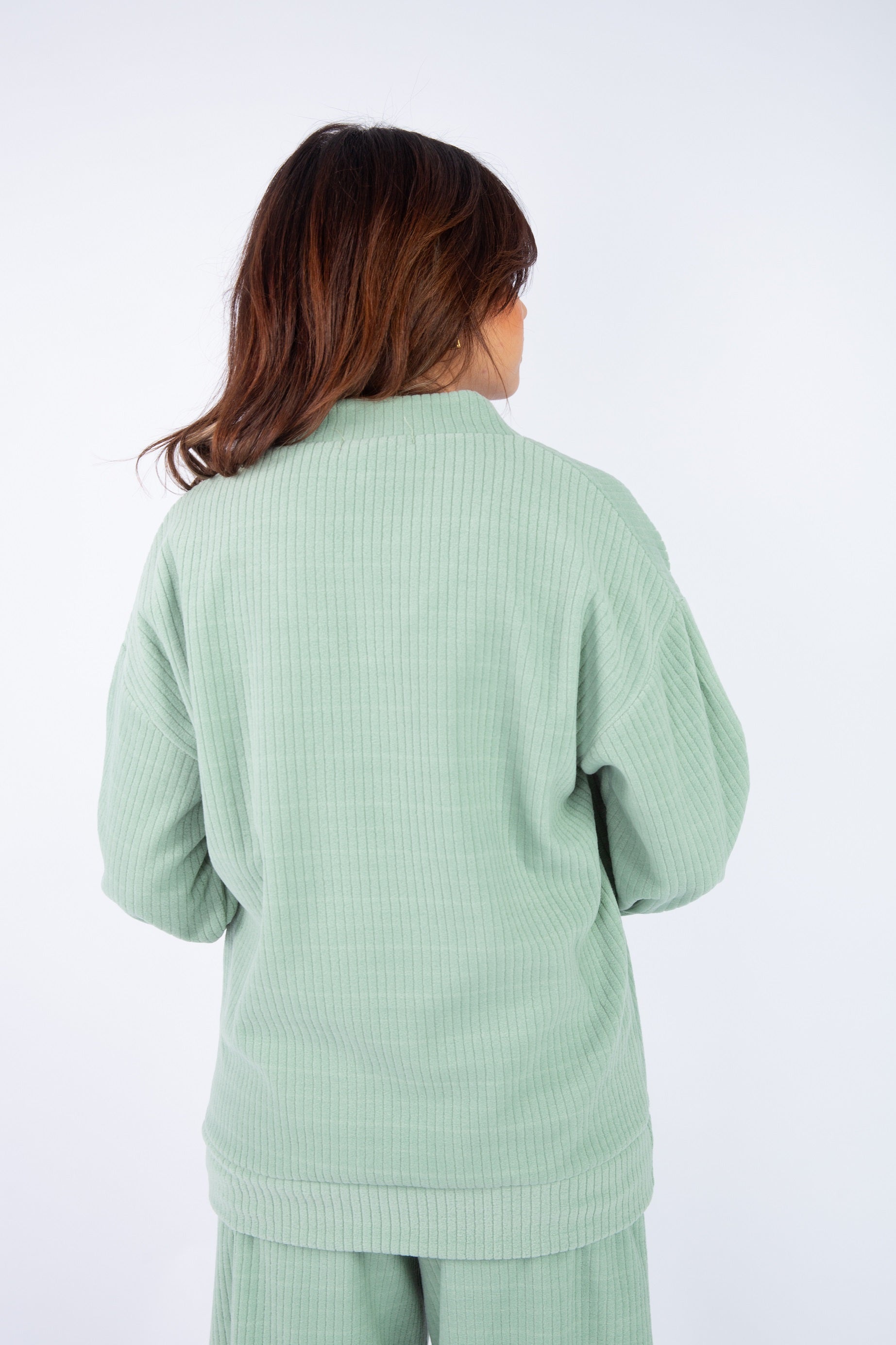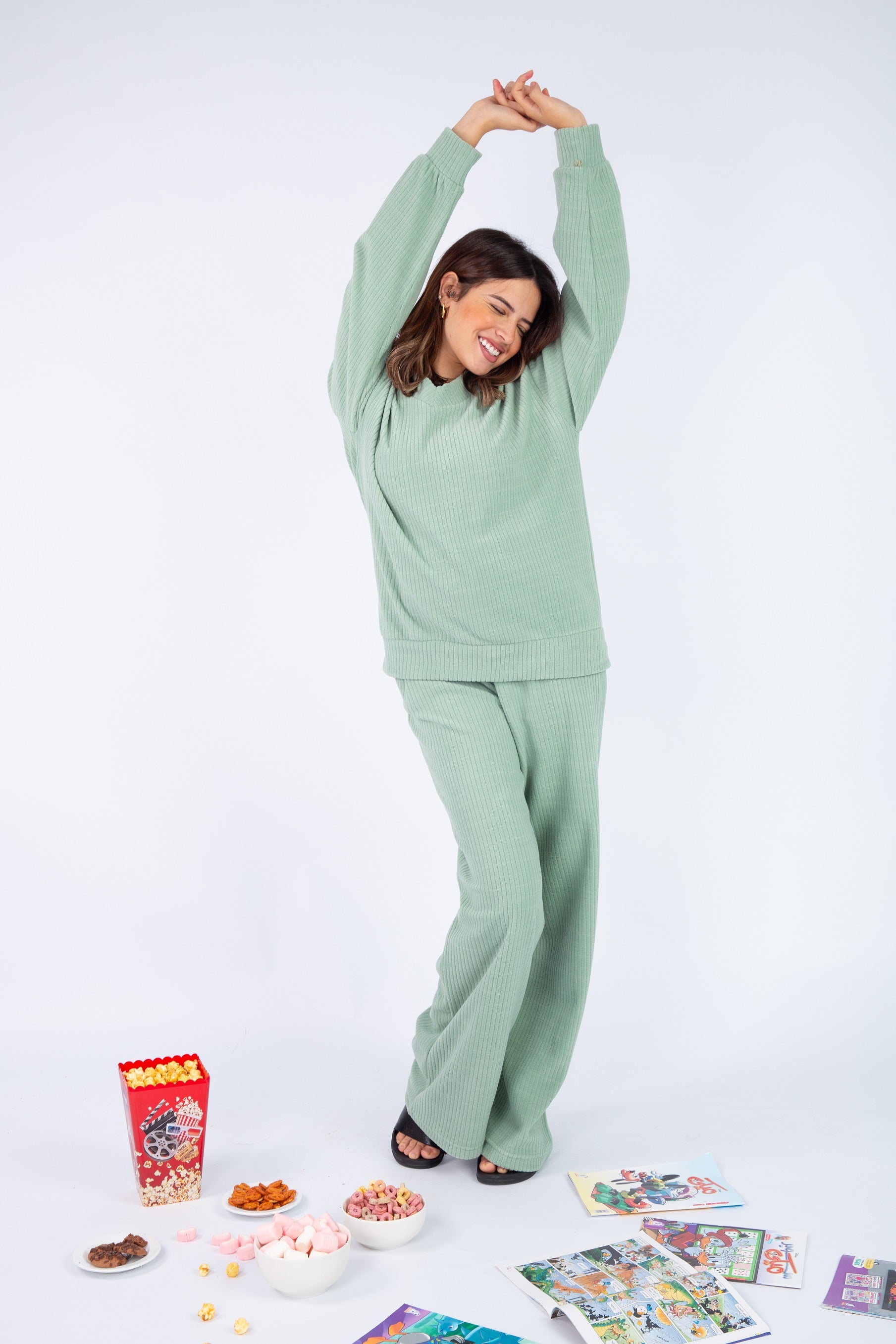 The Spotlight Set is a winter statement piece — crafted from rich, striped velvet in a soft mint green tone. Its heavy texture adds warmth and elegance, making it perfect for chilly days when you still want to stand out. Cozy, bold, and effortlessly chic — this set truly steals the spotlight.